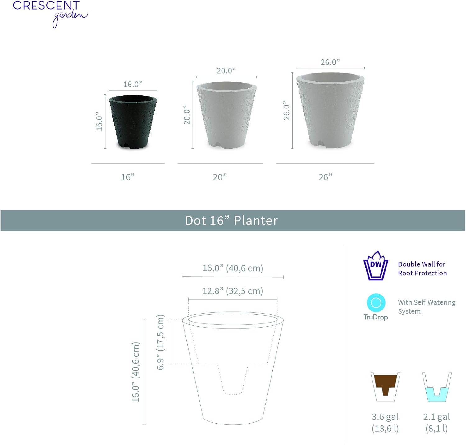 Crescent Garden Dot TruDrop Indoor/Outdoor Planter, Self-Watering Plant Pot, 16 Inches, (Slate)