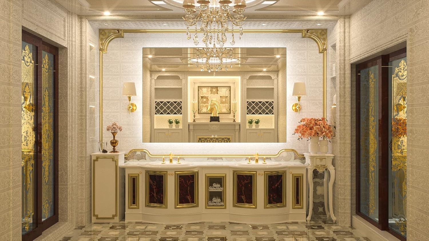 TETOTE 60 x 40 LED Backlit Bathroom Mirror with Light,3 Color White/Warm/Natural,Anti-Fog Lighted Mirror,Dimmable,Vanity Mirror,Wall Mounted
