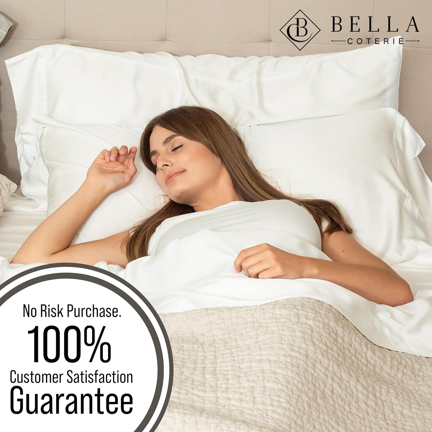 Bella Coterie Luxury Bamboo Viscose Split King Size Sheet Set | 100% Organically Grown | Ultra Soft | Cooling for Hot Sleepers | 18" Deep Pocket [White]