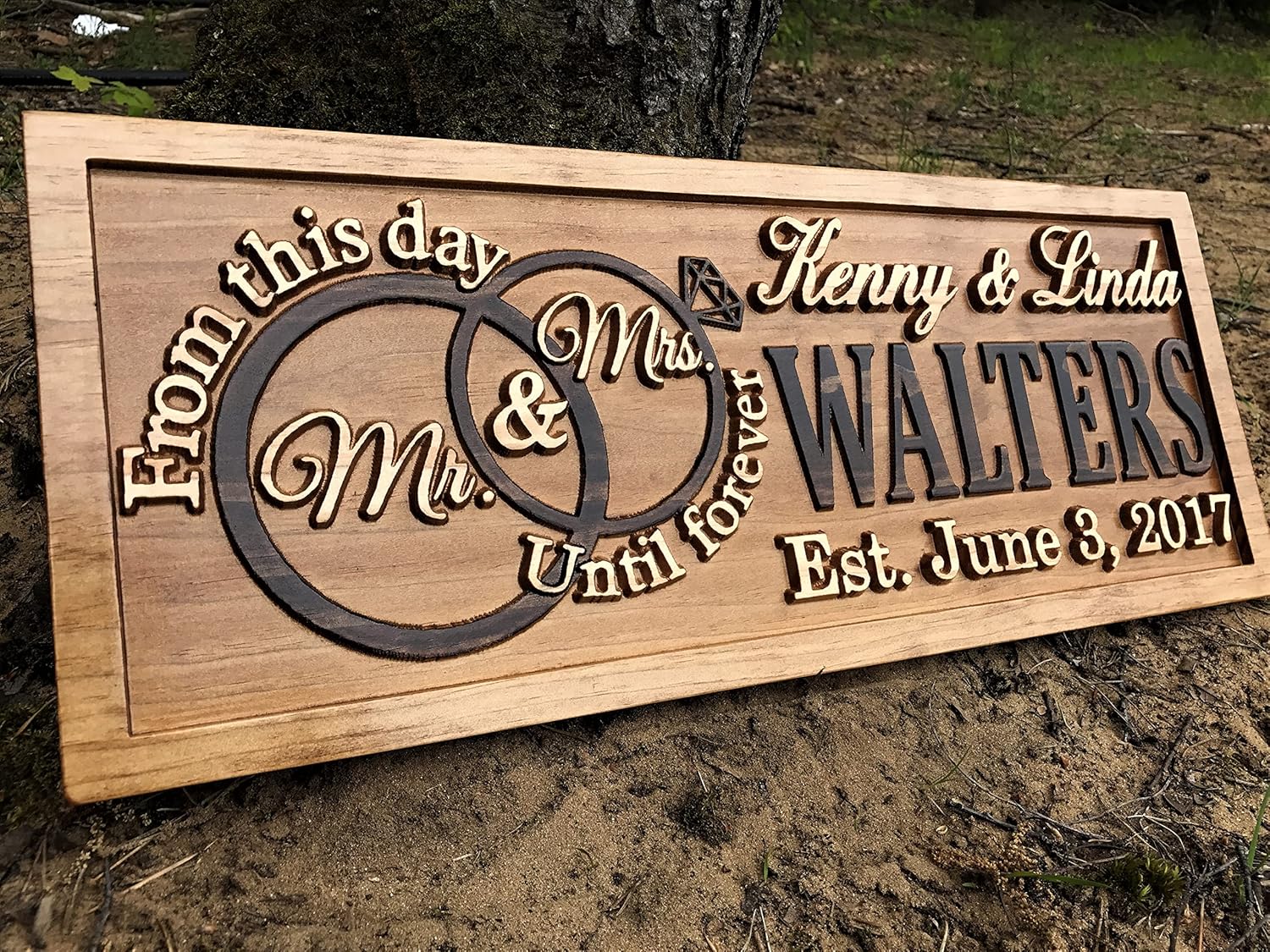 - Personalized Wood Carved Name Sign with 3D Wedding Rings