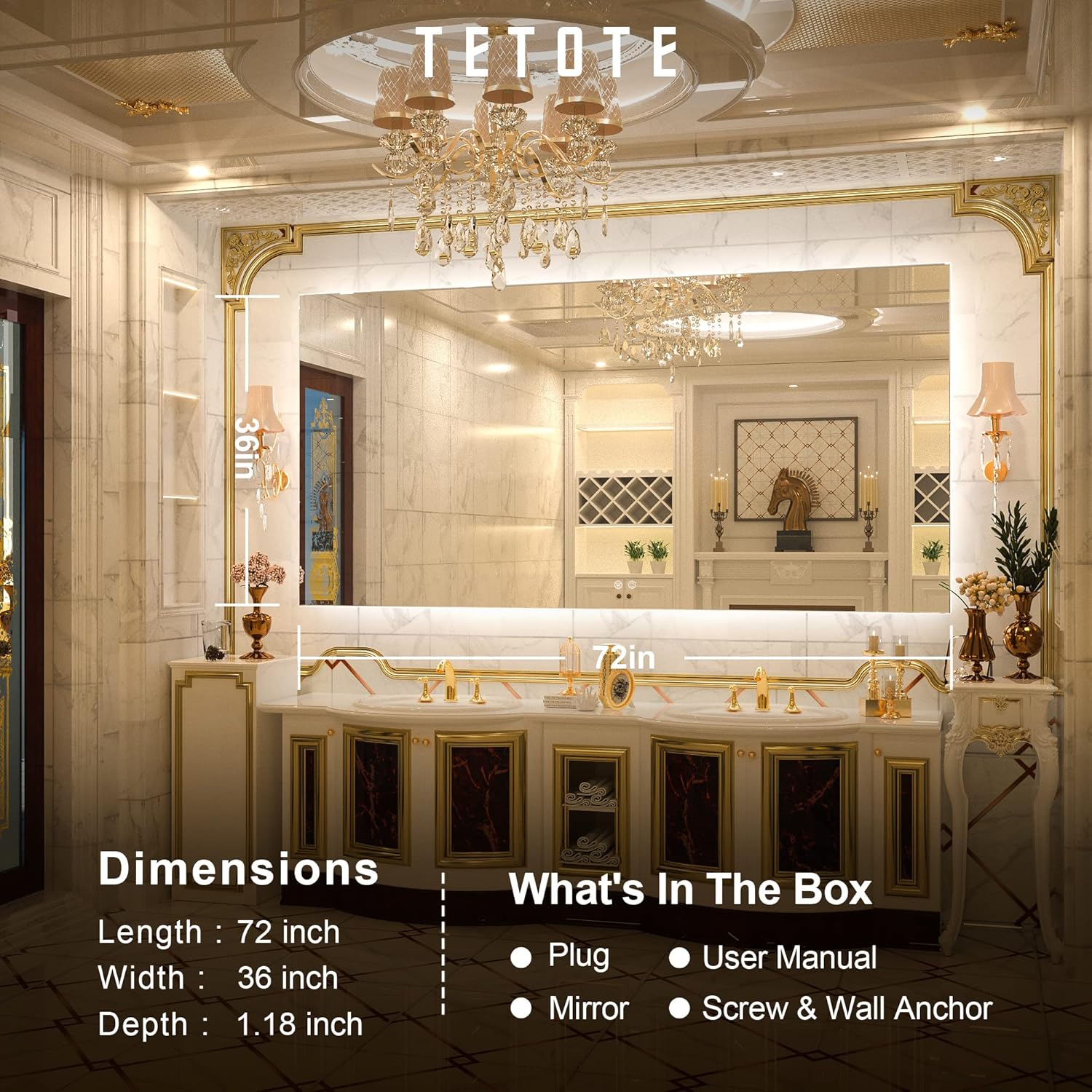 - ✨【Reliable packing & Easy installation】TETOTE mirror is secured by reinforce foam box with extra protection.Plug and screws included.Installed with plug or hardwired,horizontal or vertical all by your choice.