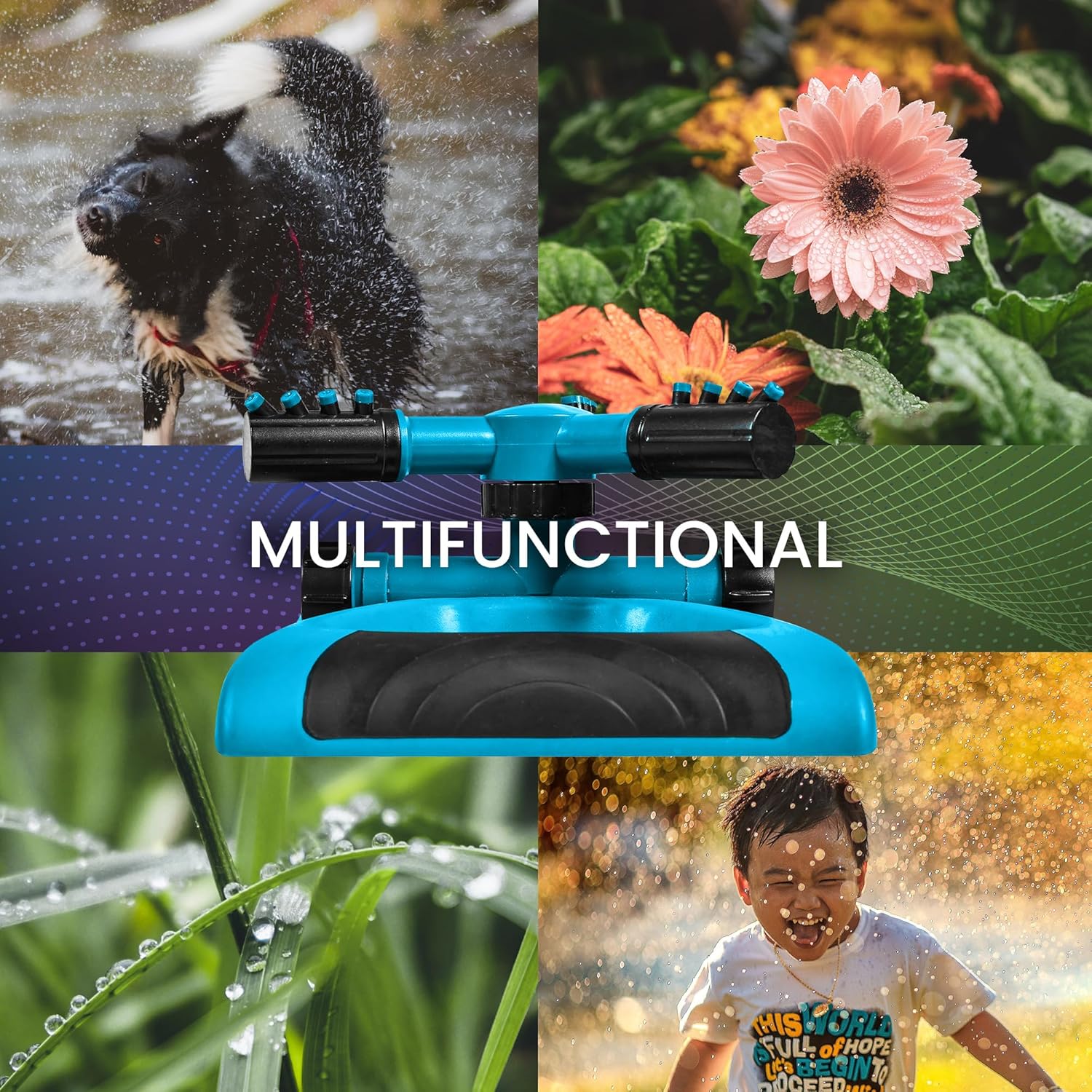 - Adjustable Rotating Arms: The Joeys Sprinklers features 3 fully adjustable arms. Customize your spray pattern to suit your area and distance.