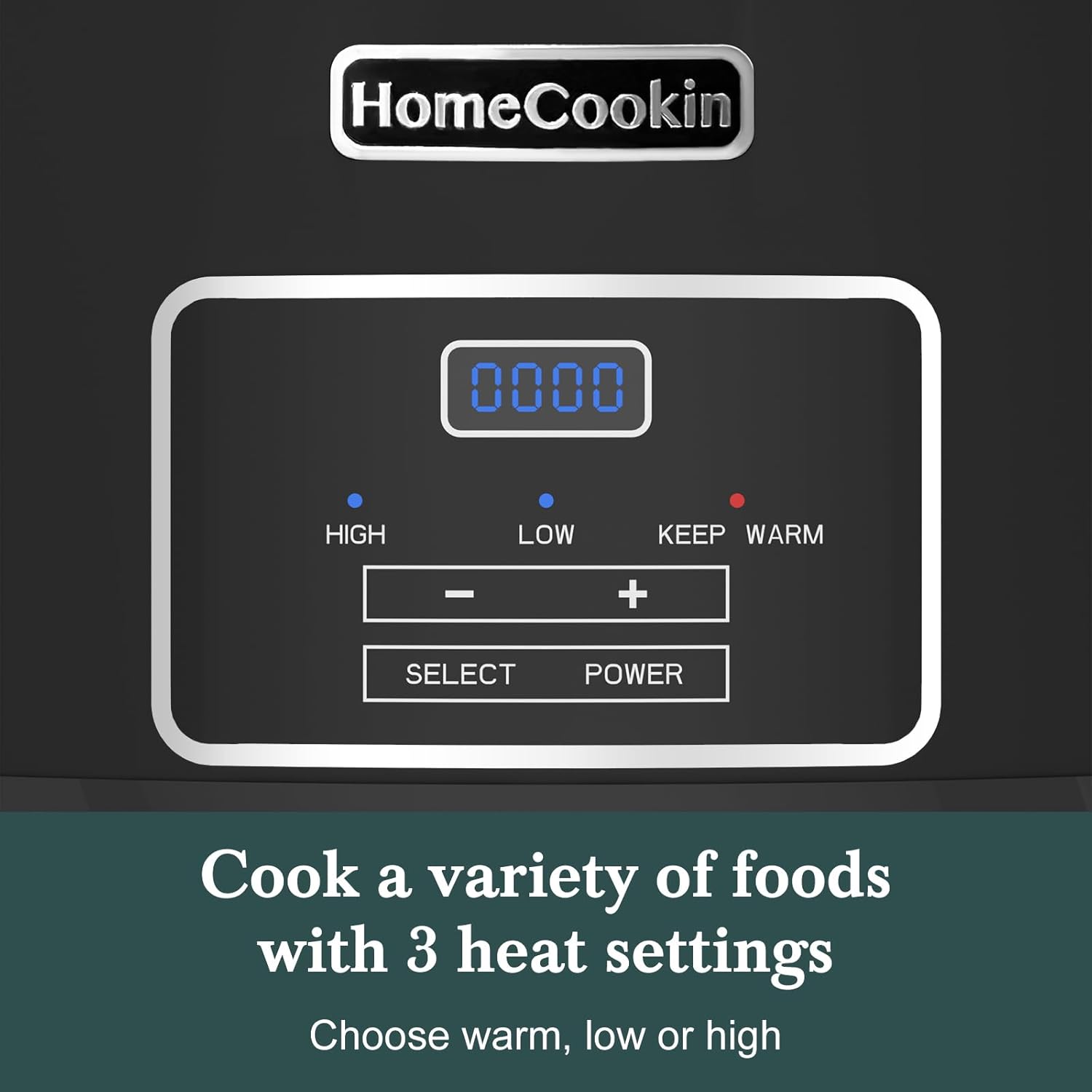 HOMECOOKIN 7-Quart Programmable Slow Cooker with Timer Keep Warm - Small Kitchen Appliance for Family Dinners - Serves 6+ People (Black)