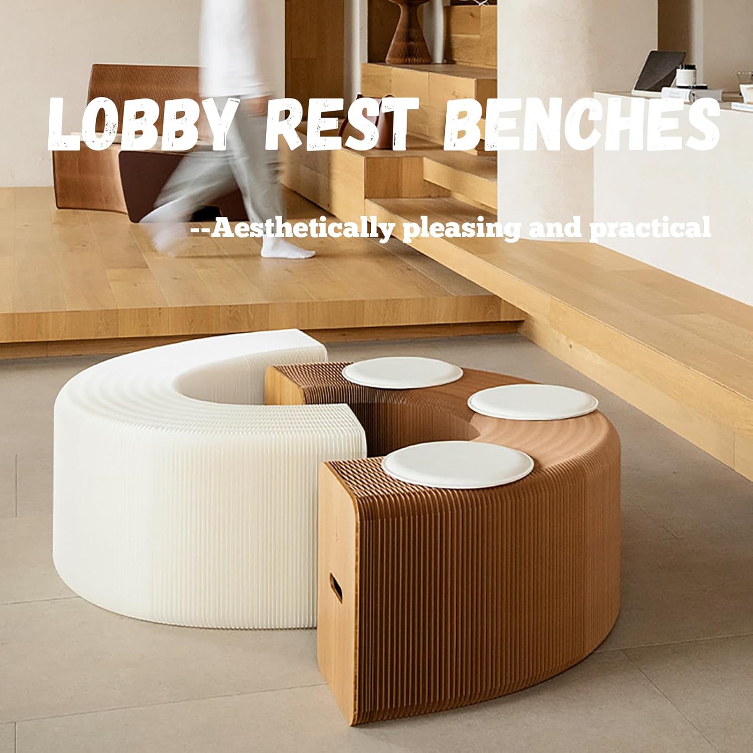 Foldable Kraft Paper Stool, Honeycomb Accordion Folding Bench, Collapsible Paper Stool for Small Spaces, Portable Footrest and Side Table for Living Room and Office,White-44×31×150cm