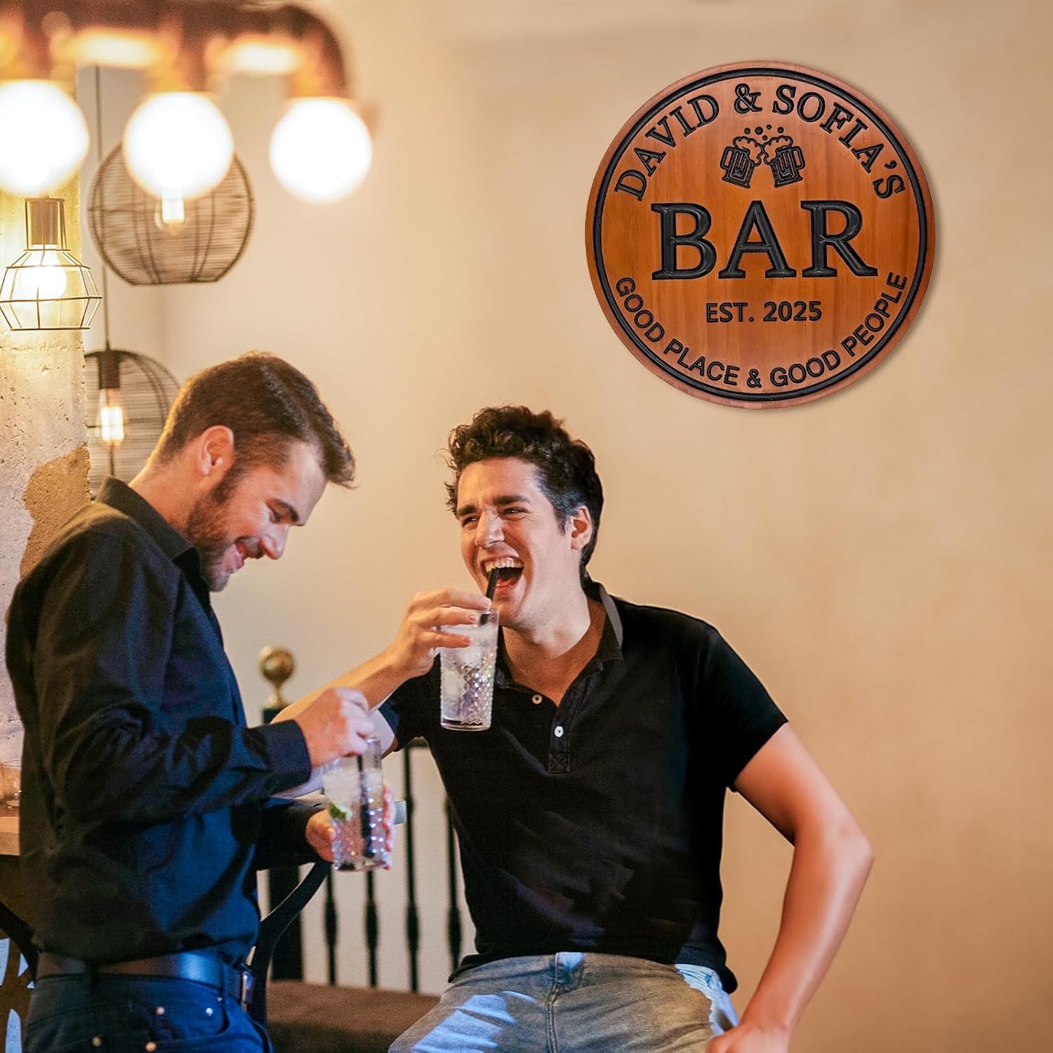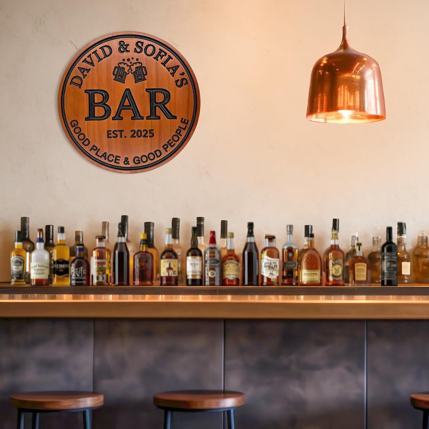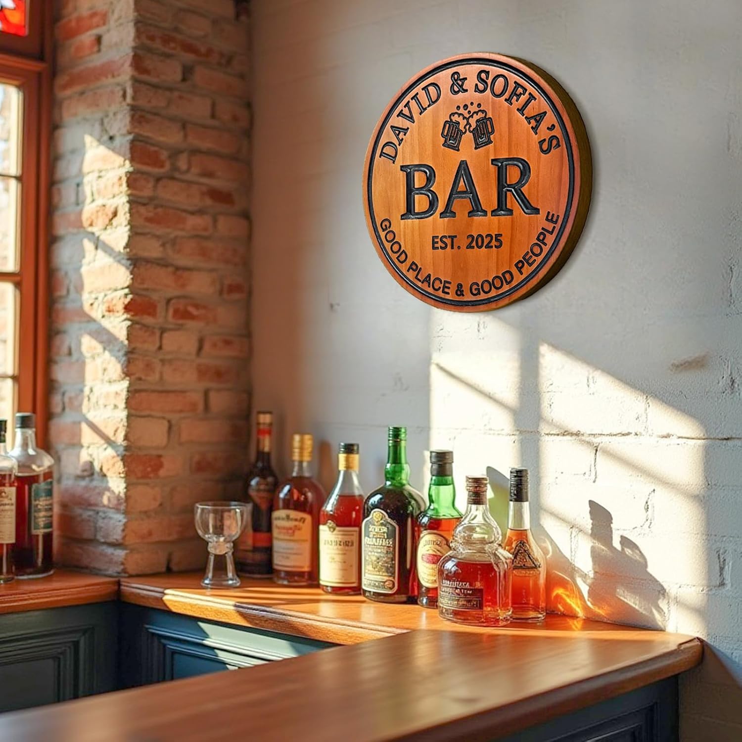Personalized Wood Bar Sign Custom Carved Name Sign for Couples Home Bar Decor Wooden Wall Art Anniversary Wedding Gift Housewarming Gift Man Cave Decor