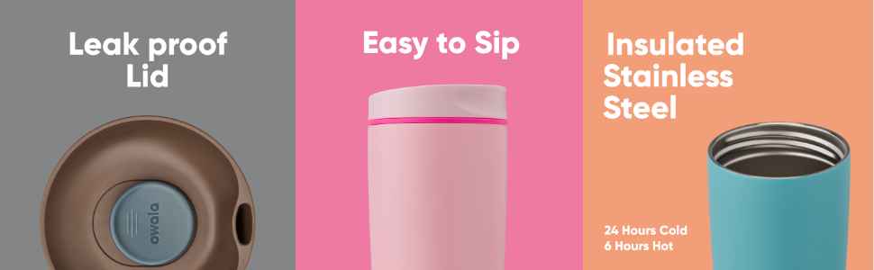 Owala SmoothSip Slider Insulated Stainless Steel Coffee Tumbler, Reusable Iced Coffee Cup, Hot Coffee Travel Mug, BPA Free 12 Oz
