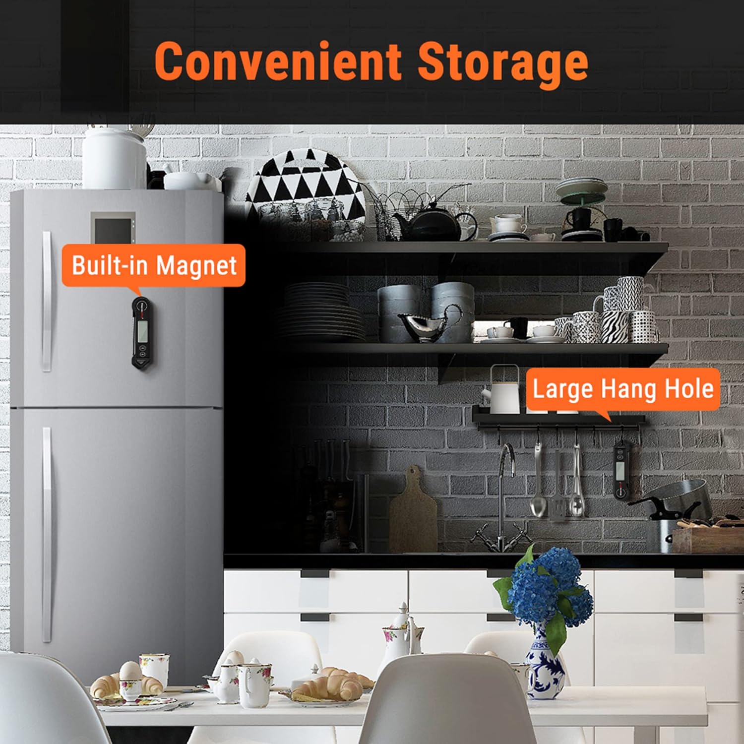 - IP65 Waterproof & Convenient Storage: Quickly clean the meat thermometers for grilling with probe under running water; features a magnetic back to allow for placement on any metal surface or use the hang hole for hooks